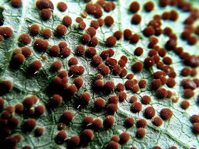 Cuerpo: En el haz de la hoja se observan manchas con depresión amarillentas a ocre anaranjadas, circulares a oblongas, con decoloración progresiva de la hoja a tonos amarillentos y pardos por el marchitamiento y defoliación prematura de estas. En el envés y tallos se observan numerosos telios pustulados, hipófilos, dispersos, globosos a subglobosos u oblongo alargados, de hasta 4-5 milímetros, inicialmente de color amarillento o anaranjado, después con la maduración a tonos salmón, pardos, pardo rojizos o pardo negruzcos, con el tiempo se vuelven blanquecinos por la germinación de las Teliosporas que produce basidiosporas.
